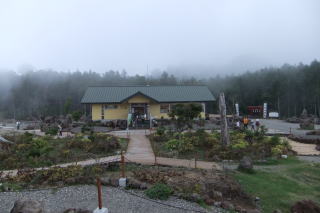 ロープウェイに揺られて20分で山頂駅に到着した。 ここは既に標高2000mの高所。そして元々がスキー場なので、レストランや観光客用に足湯まで揃っている。家族連れやオバチャマ達にとっては、正に天上の楽園である。 広場の左奥には登山道の入口があり、歩いて直ぐのところに二荒山神社が鎮座していた。 |